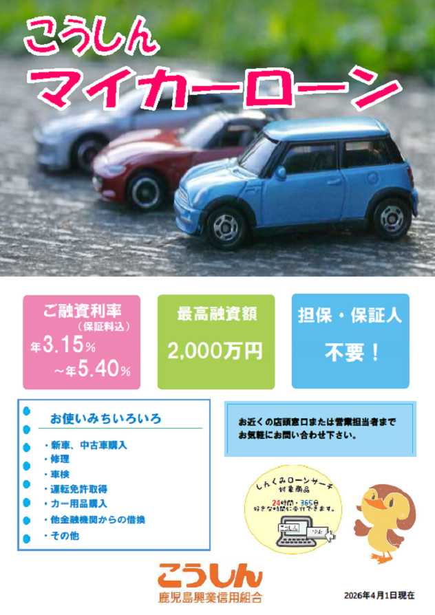新車購入から車検費用、免許の取得など車に関する費用、また、他金融機関のマイカー購入資金等に関する借換にもご利用いただけます。