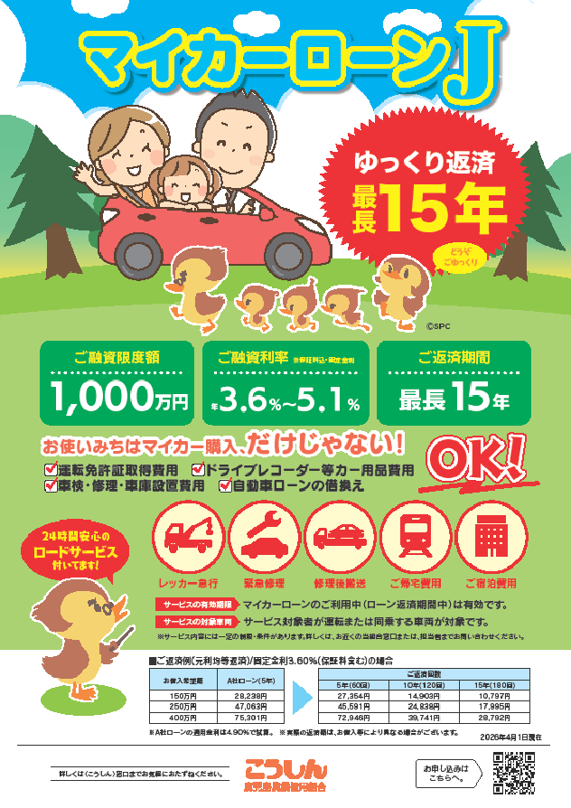 新車・中古車購入、修理、車検、運転免許取得など、車に関する費用にご利用いただけます。