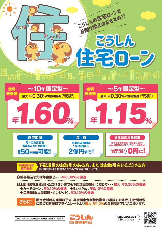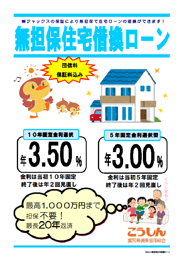 当組合は、曽於市との「定住施策促進に向けた連携協定」に基づき、曽於市内に住宅を新築する人を対象に、所得要件や融資期間を緩和した「長期住宅資金融資制度」を取扱っております。
